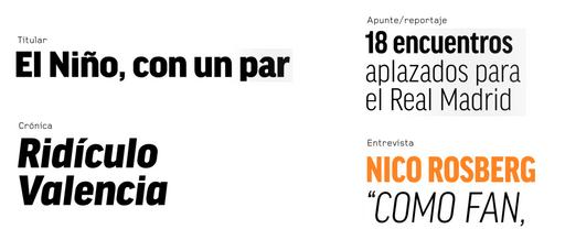 Junto a los cambios estructurales, el principal cambio del nuevo diseño es el de las tipografías utilizadas. Se pasa de tres a dos familias: Acta, utilizada para el cuerpo de texto y la variada FF Good, que se utilizará para titulares, textos de apoyo y epígrafes. Dicha reducción de tipografías corresponde a una intención por simplificar el aspecto visual del diario.