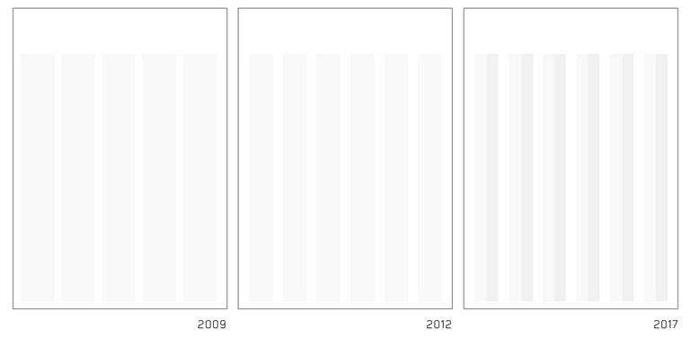 Al igual que en el rediseño deL 2012, la retícula de Marca vuelve a modificarse. De las 6 columnas en las que se optimizaba el contenido hasta ahora, se pasa a dividir la rejilla en dos para obtener así 12 columnas dinámicas, con las que se irá jugando en cada información