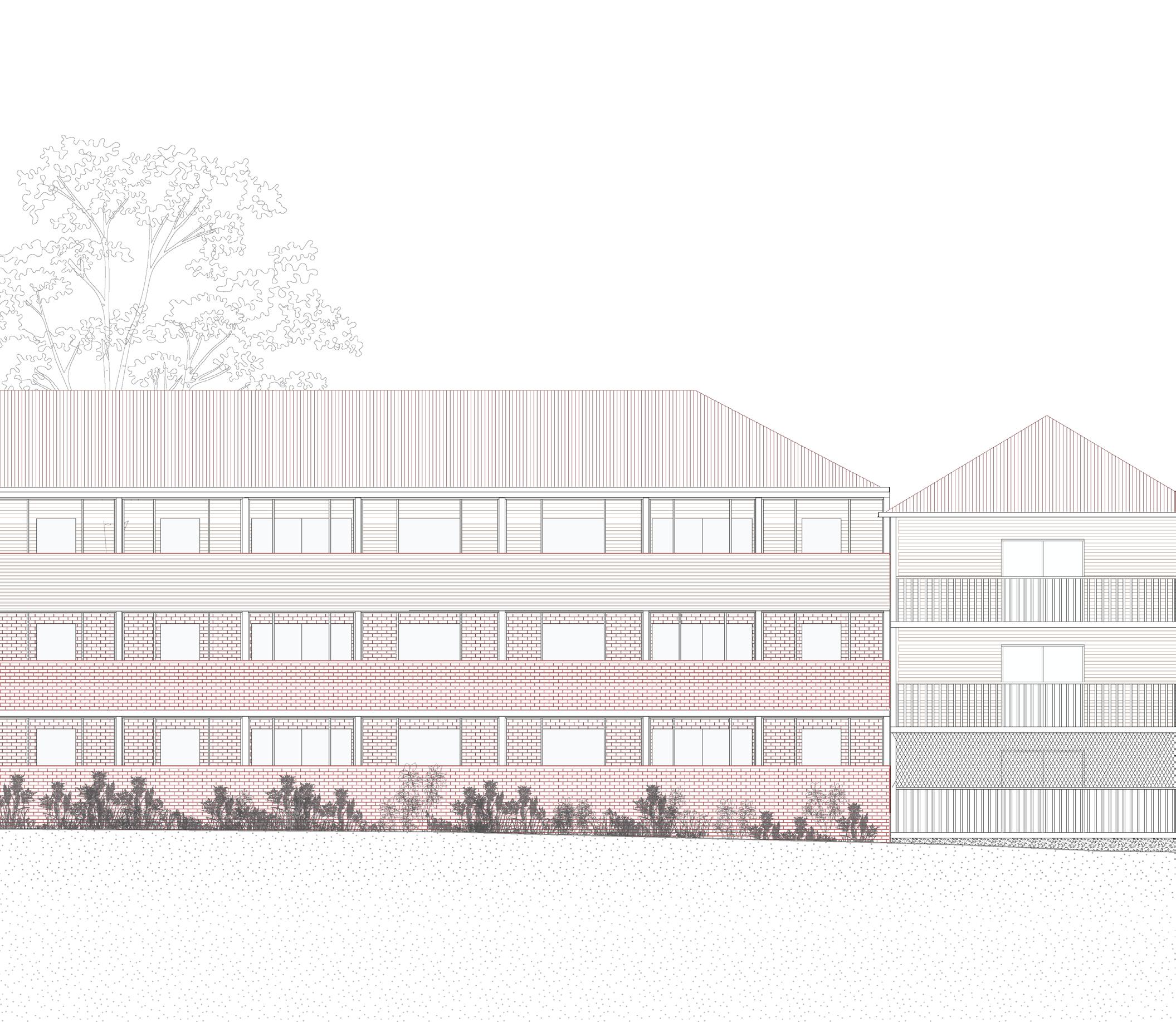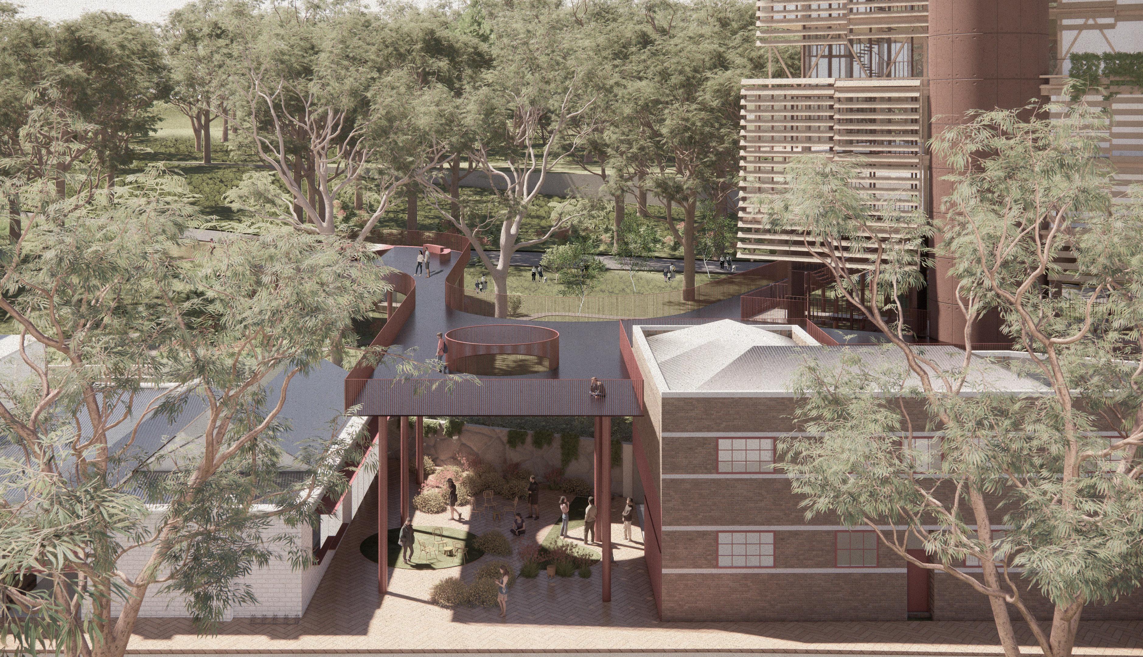 A mixed-use high school and social housing project with a focus on designing with Country. Beginning with deep research into natural and urban systems, the project implements adaptive re-use alongside new buildings and walkways, combining multiple structures and creating new links between the public domain and the site. Transformative landscaping, centred on the care and education of Country, is a central feature of the project.