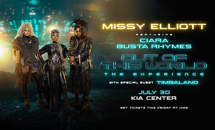 Orlando, FL - Continuing her dominance as one of the most significant artists in music, global superstar and hip-hop/R&B pioneer Missy Elliott has expanded her 2024 North American summer tour, OUT OF THIS WORLD — The Missy Elliott Experience, where she will be joined on the road by hip-hop legend Busta Rhymes, multi-platinum-selling superstar Ciara and special guest mega-producer Timbaland. Produced by Live Nation in association with Mona Scott-Young, Elliott’s longtime manager and CEO of Monami Entertainment, the additional tour dates include Orlando’s Kia Center on Tuesday, July 30. Tickets are now on sale to the general public.