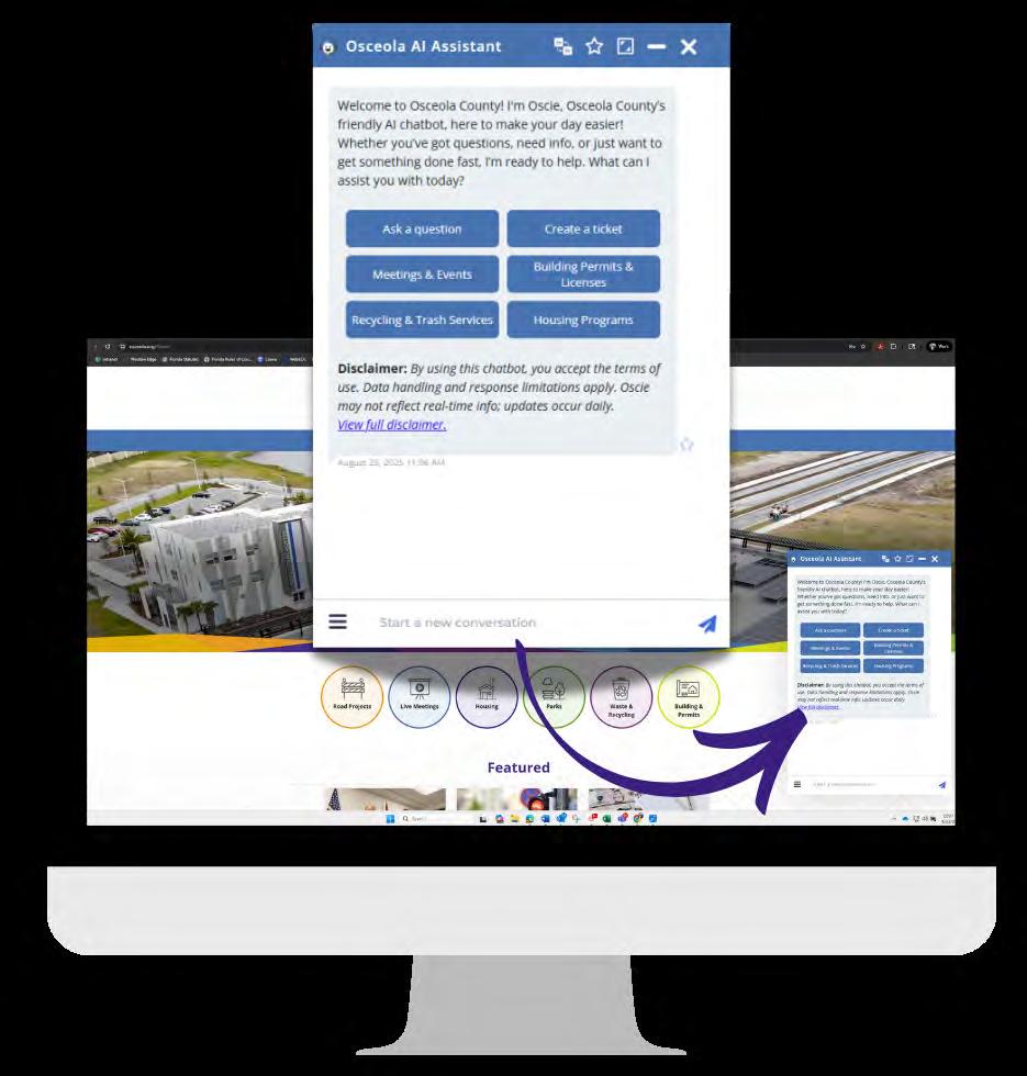 Osceola County, FL - As part of Osceola County's search to Be First to What's Next, the County has launched its new AI Chatbot, Oscie, for use by our residents and visitors!