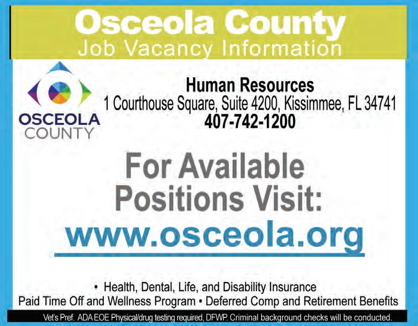 Para más información sobre carreras en la Oficina del Sheriff del Condado Osceola, visite nuestro sitio web en osceolasheriff.org.