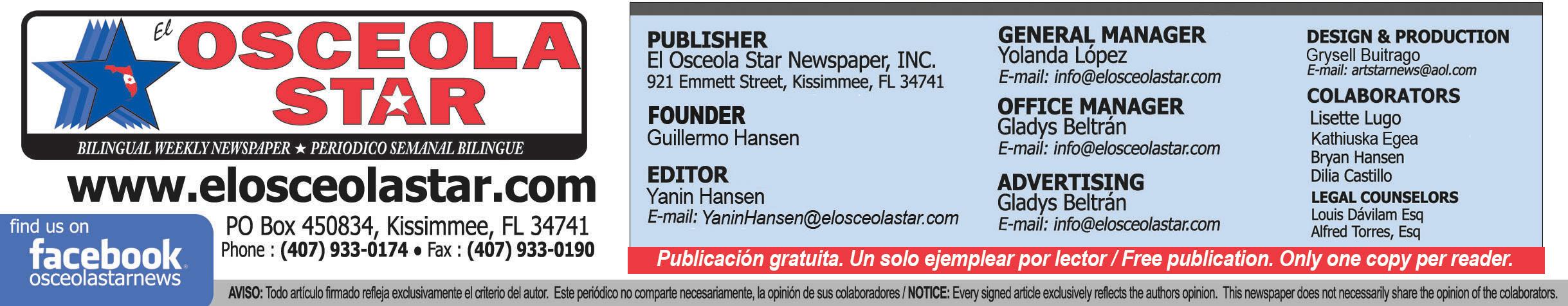 • Oscar Cohn, Program AssistantOsceola Technical College Maria Cosme, Executive SecretaryKissimmee Elementary