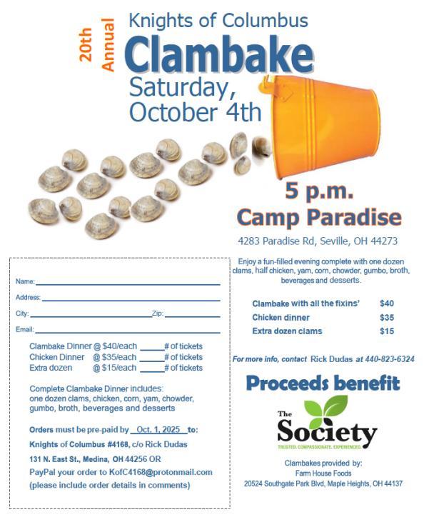 First, coming up in October is our Annual Columbus Day Dinner on Sunday, October 12, 2025 at Council 4130’s Hall. The doors will open at 4:00 PM for social with dinner starting around 4:30
