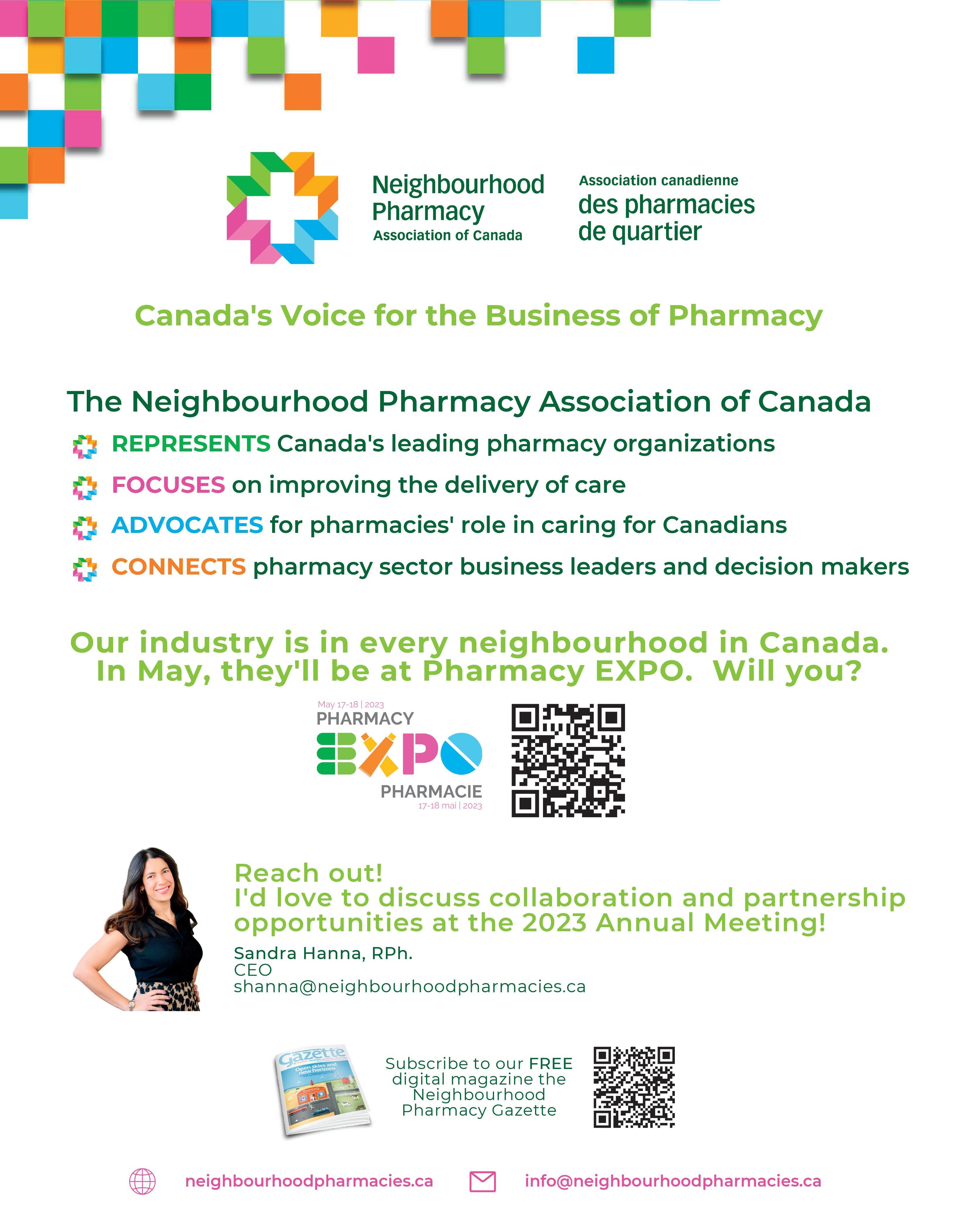 Our 2023 Pharmacy EXPO is in Vancouver, B C , May 17-18 and has more than 300 registrants, with attendees gaining direct access to decision-makers and business leaders representing nearly 80 percent of Canadian pharmacy retailers Neighbourhood Pharmacies events are where the pharmacy industry meets to network and discuss critical issues. Our industry is in every neighborhood in Canada. This May, they’ll be at the Pharmacy EXPO Will you? Register today and be where the depth and breadth of the pharmacy sector connects!