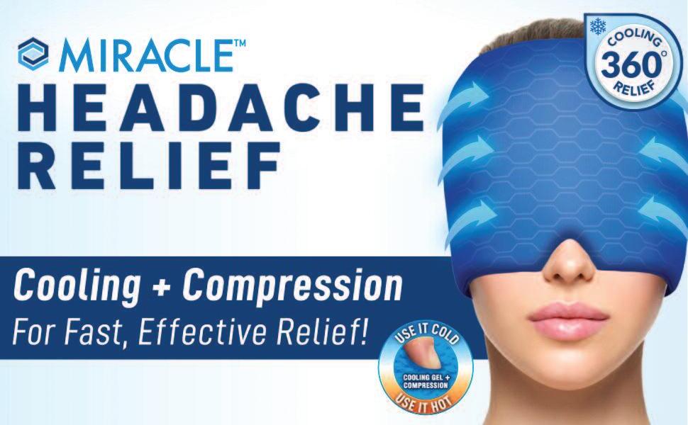 Miracle™ headache relief wrap, the ultrasoothing, gel compression wrap that h e l p s r e l i e v e h e a d a c h e s y m p t o m s , stress, tension and more! Simply slide on Miracle headache relief wrap and wrap your head in 360 degrees of compression for quick, targeted comfort. Miracle headache relief wrap is soft, flexible and designed for a perfect fit The secret is t h e t r i p l e - c o m f o r t d e s i g n t h a t s t a r t s with a compression layer, then gel, and