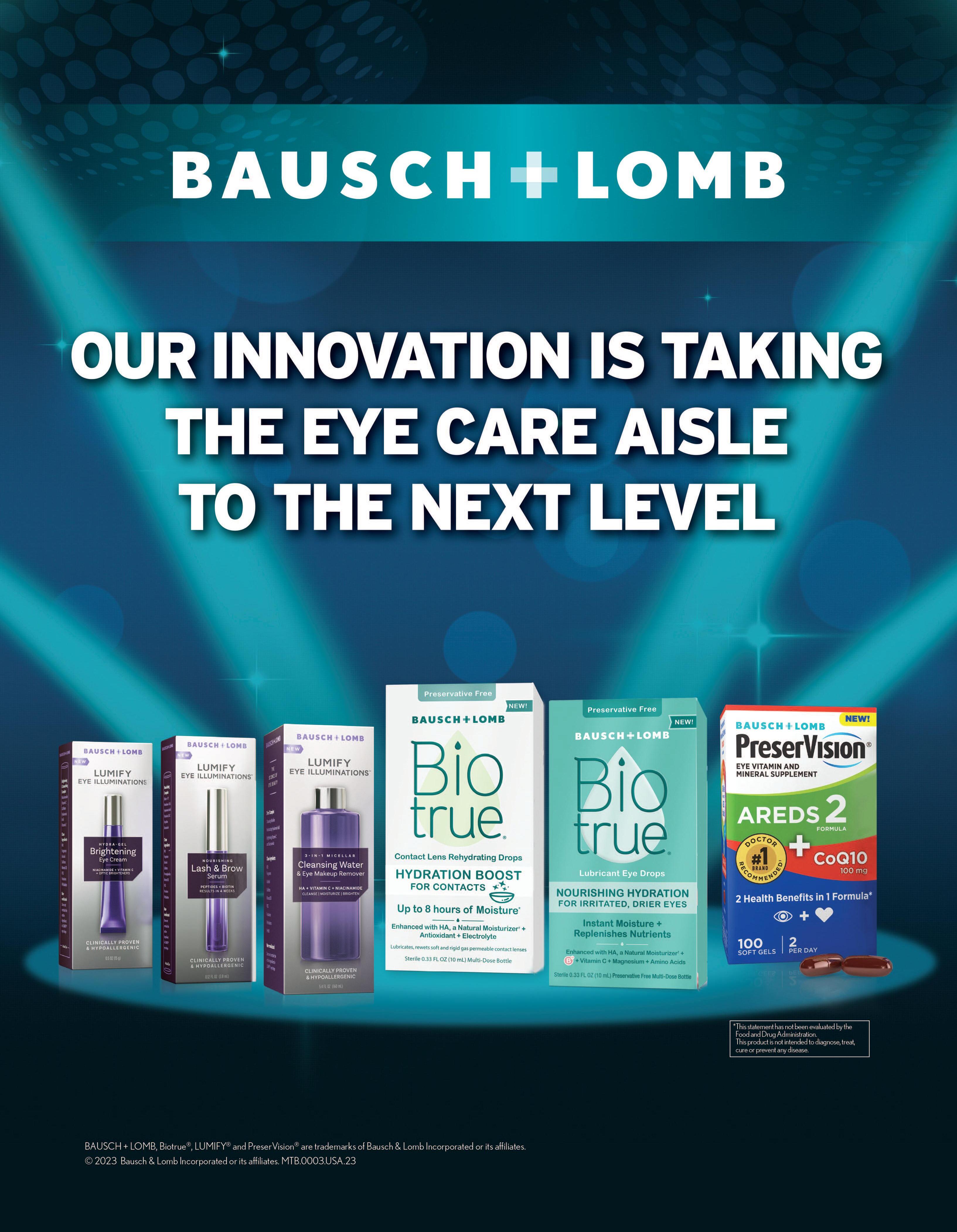 n o w i n c l u d e s OCUSorb™ technology. Offering a proprietary composition of lutein and zeaxa n t h i n , O C U S o r b h a s b e e n c l i n i c a l l y shown to provide superior absorption P ROU D NACDS AS SOC IATE M E M B E R FOR OVE R A DECADE Kimberly Oser Publisher Tara Neal President Abeer Abiaad Vice President Anthony Socci President of Sales Yasmine Brown Production Manager/Art Director AJ Flick Senior Editor JoEllen Lowr y Editor Heather Albrecht Customer Ser vice Marcos Morhaim Senior Account Manager Riley Usser y Account Manager Enrico Cecchi European Sales Cha n Drugstore Daily is pub ished by Oser Communicat ons Group ©2023 All rights reser ved Executive and editoria offices at : 1877 N Kolb Road Tucson AZ 85715 520 721 1300/ Fax : 520 721 6300 European off ces ocated at Lungarno Benvenuto Ce lini 11 50125 Florence Ita y www osercommunicat onsgroup com Lee M Oser Founder Daily CHAIN DRUGSTORE Continued on Page 38 Continued on Page 38