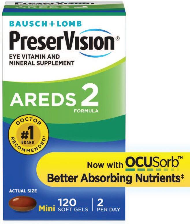 of patients,” said John Ferris, Senior Vice President, Global Consumer, Bausch + L o m b “ W e a r e p r o u d t o o f f e r PreserVision AREDS 2 eye vitamins with the OCUSorb formulation. The OCUSorb formula helps important antioxidants, l u t e i n a n d z e a x a n t h i n , t o