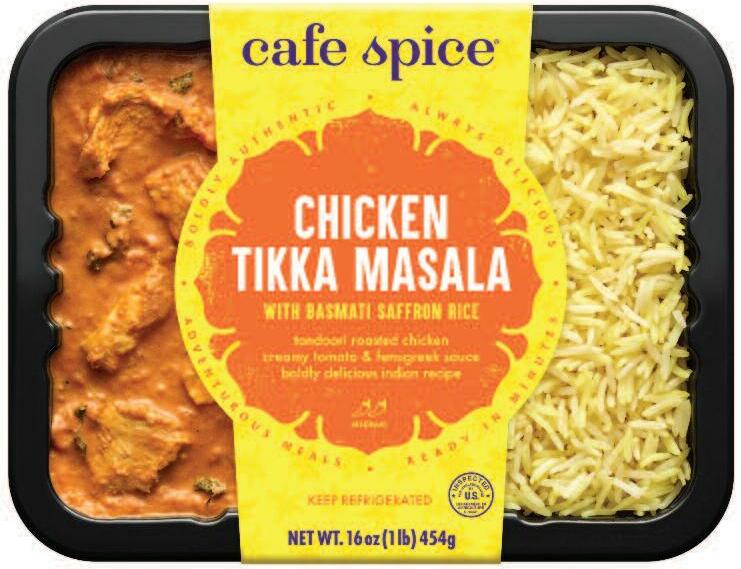 L o c a t e d i n N e w Yo r k ’s H u d s o n Va l l e y, Cafe Spice prepares authentic global cuisine for retail grab-n-go and foodservice T h e c o l l e c t i o n o f r e s t a u r a n t - q u a l i t y m e a l s i n c l u d e s s o m e t h i n g f o r