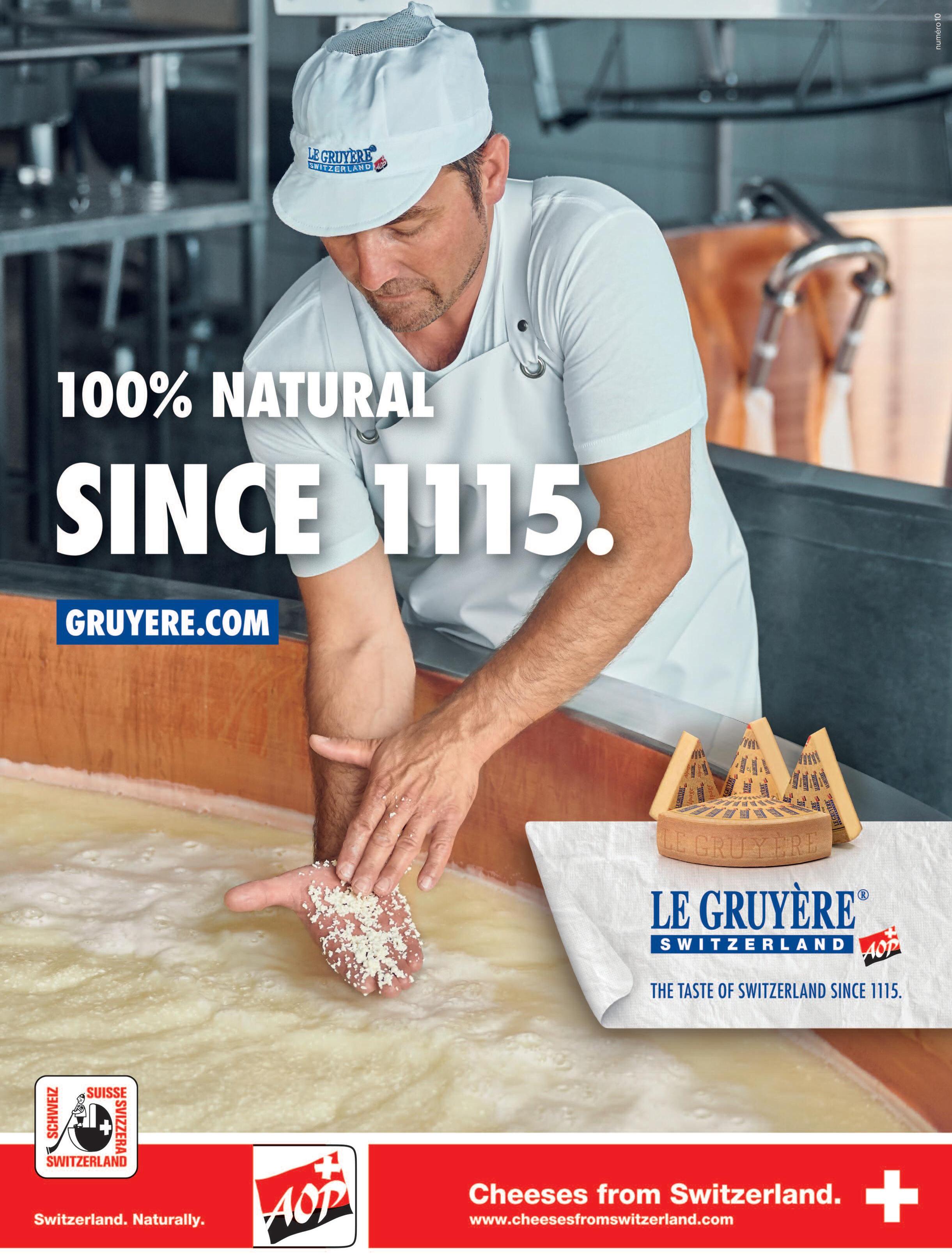 • Le Gruyère AOP is natural – there are no additives, no GMOs and no preservatives.