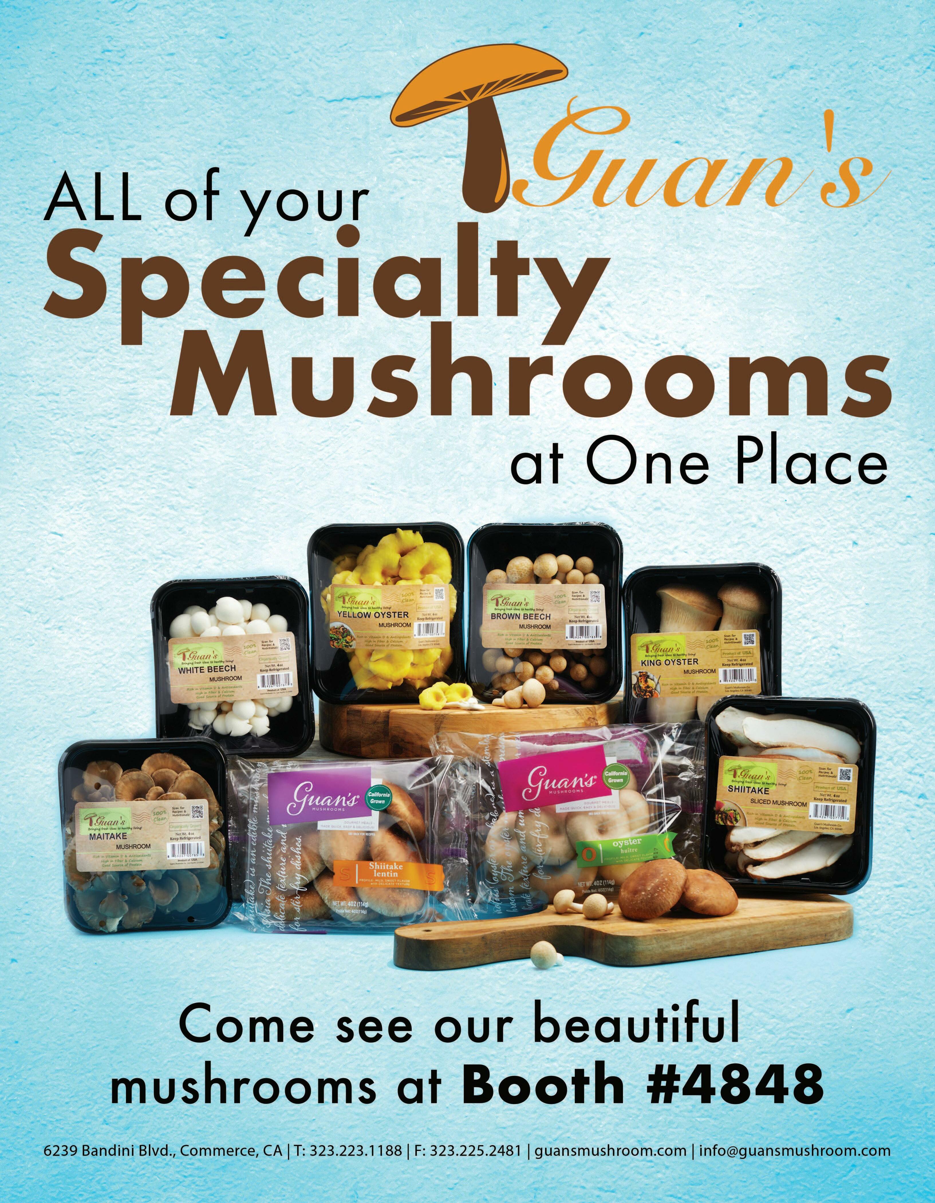 Guan’s Mushroom is a family owned m u s h r o o m g r o w e r a n d d i s t r i b u t o r based in Los Angeles, California The company was first started in 1996 by Juliet and David Guan, selling mush r o o m s f r o m t h e i r s m a l l g a r a g e i n Fremont. Since then, the company has expanded to locations in five metropol itan cities: Los Angeles, San Francisco, P h i l a d e l p h i a , N e w Y o r k C i t y a n d Toronto “What really sets us apart from other companies is our commitment to specialty mushrooms Whether it was the first shipment of shiitake mushroom we had flown in from overseas or the