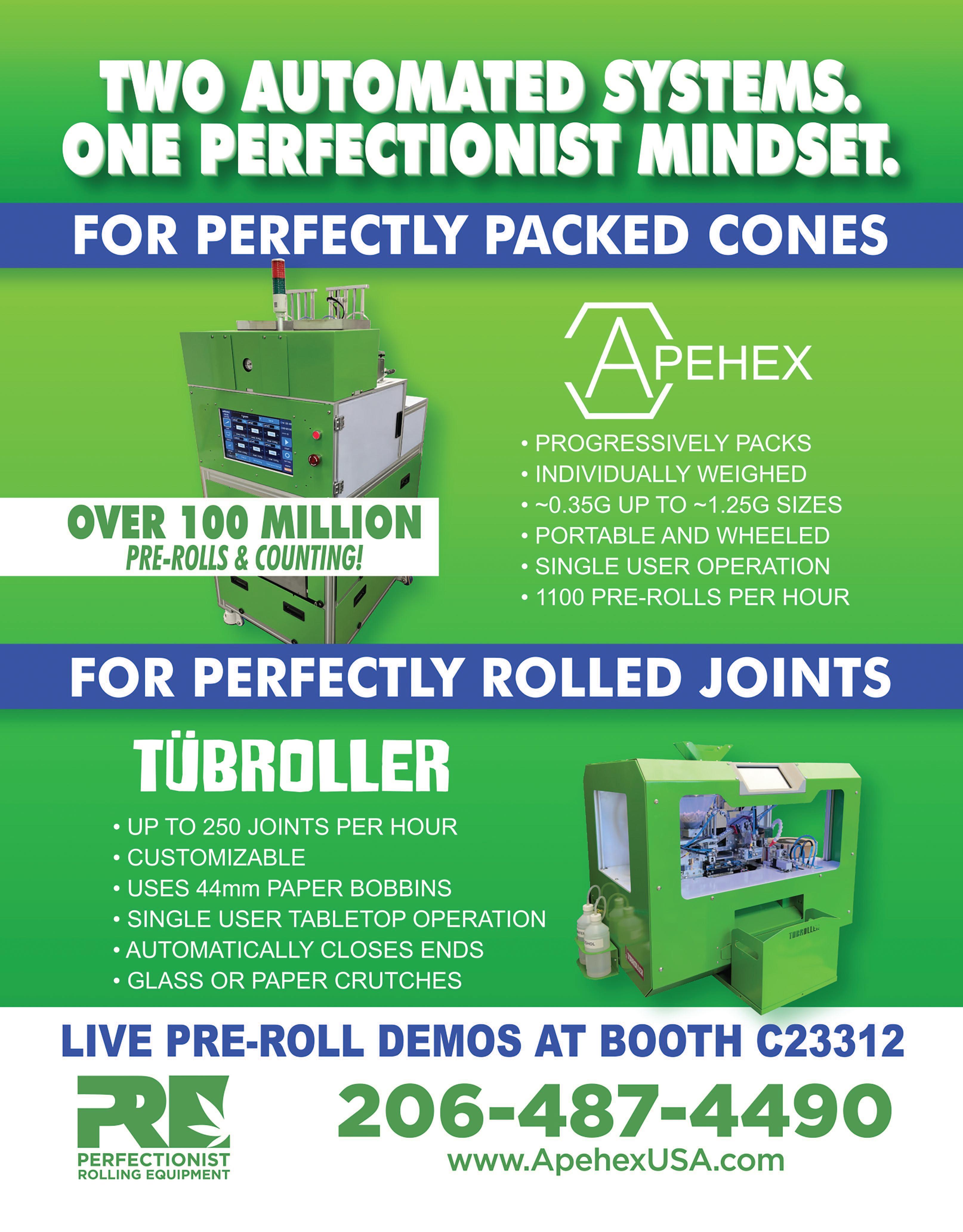In an industry increasingly shaped by technology, the APEHEX Automated Pre-Roll Machine is emerging as a symbol of precision and productivity in cannabis manu f a c t u r i n g D e v e l o p e d b y P e r f e c t i o n i s t R o l l i n g Equipment (PRE), a Phoenix, Arizona-based company, founded and operated by cannabis professionals, the APEHEX is making waves for its ability to combine speed, consistency and craftsmanship in one sleek, industrial package