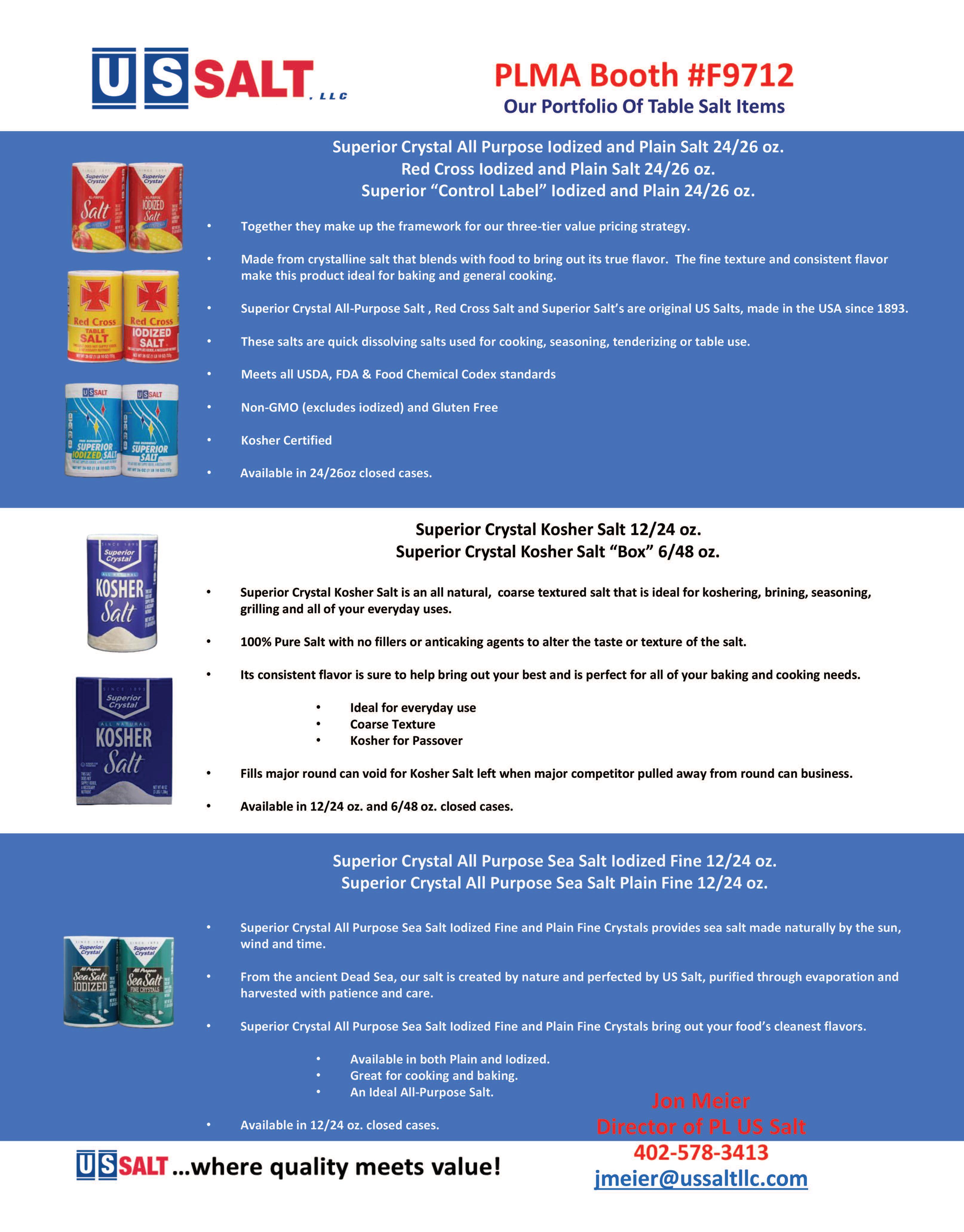 For more information, go to w w w .ussaltllc.com or stop by booth #F9712.