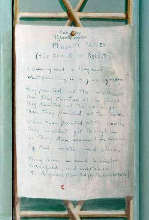 A Bunny and a Reynard Went painting in a glass garden: They painted all the walls Then they painted all the floors They painted all the ceilings Then they painted all the doors.
