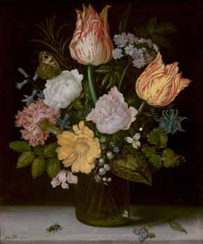 their fidelity to nature but also for their trompe l’oeil effects. One of these is Still Life of Variegated Tulips, Roses, a Hyacinth, a Primrose, a Violet, Forget-me-nots, a Columbine, Lily-of-the-valley, a Cyclamen, a Marigold and a Carnation, all in a glass vase, with a Butterfly and a Housefly by Ambrosius Bosschaert the Elder (1573–1621), which presents a veritable microcosm of the natural world, including a fly that has settled for a brief moment on the table.55 Other examples worth mentioning are the Still Life with Flowers sitting on a crumbling stone shelf by Johannes Baptiste Fornenburgh (1595–1648/49), Still Life of Plums, Cherries, Strawberries, and a Rose (early to mid-seventeenth century) by Jacob van Hulsdonck (1582–1647), and two paintings on copper by the Dutch Jesuit artist Daniel Seghers (1590–1661), in which elegant bouquets are arranged in glass vases that throw off iridescent reflections.56 Against this rich background, it is not surprising that Paul and Bunny should choose trompe l’oeil—not once, but twice—to decorate their beloved home.