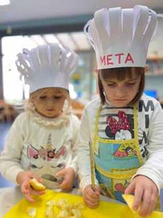 V mesecu novembru smo v skupini Sončki spoznali poklic kuharja. Obiskali smo kuharje v naši kuhinji in jih opazovali pri svojem delu. Da bi zares spoznali, kako se kuha, smo se tudi sami preizkusili v vlogi pravih kuharjev. Zavezali smo kuharske predpasnike in si nadeli kuharske kape. V prvem tednu smo se lotili peke pice. Zamesili smo testo, ga pokrili in počakali, da je bilo pripravljeno na gnetenje. Otroci so z veseljem in navdušenjem sodelovali in komaj čakali, da bodo lahko na pizzo položili še zadnji sestavini – šunko in sir. Veseli smo pico odnesli v kuhinjo in počakali, da se speče. Še večje veselje je sledilo, ko je kuhar prinesel pečeno pico v igralnico. Naslednji dan smo se lotili kuhanja jabolčnega kompota. Veselega kuharskega ustvarjanja seveda še ni konec, saj nas čaka še veliko zabavnih receptov.