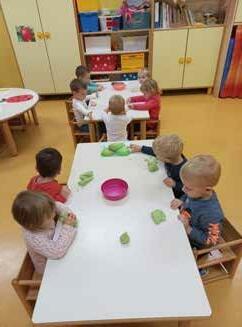 je sadja in zelenjave v barvne obroče, razvrščanje zdrave in nezdrave hrane v škatle, ristanc, molzenje krave, izdelavo sadnih nabodal itd. Otrokom so bile dejavnosti všeč in navdušeni so bili nad tem, da so lahko obiskali še druge igralnice.