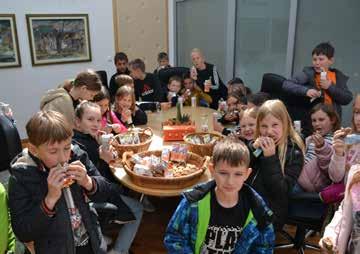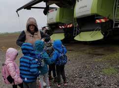 Prijazni šoferji Prevozništva Korez iz Gorišnice so poskrbeli, da so nas na najbolj hladen dan varno pripeljali do Oljarne Korošec, kjer so nas prijazno povabili v mešalnico. Ogledali smo si, kako se bučna semena spremenijo v bučno olje. Gospod Milan in njegovi pomočniki so nam prikazali celoten postopek pridelave bučnega olja. Otroci smo pomagali semena mešati in pri tem uporabljali največjo kuhalnico, kar smo jo videli. Za nameček smo si prislužili »južno« in pomakali žemljice v bučno olje. Bilo je zelo okusno. Naša prijateljica Saša, ki je tam tudi doma, nas je pogostila še z bučnimi semeni, ki so bila slana in so bila odličen prigrizek. Ogledali smo si še kombajna, ki sta navdušila naš podmladek.