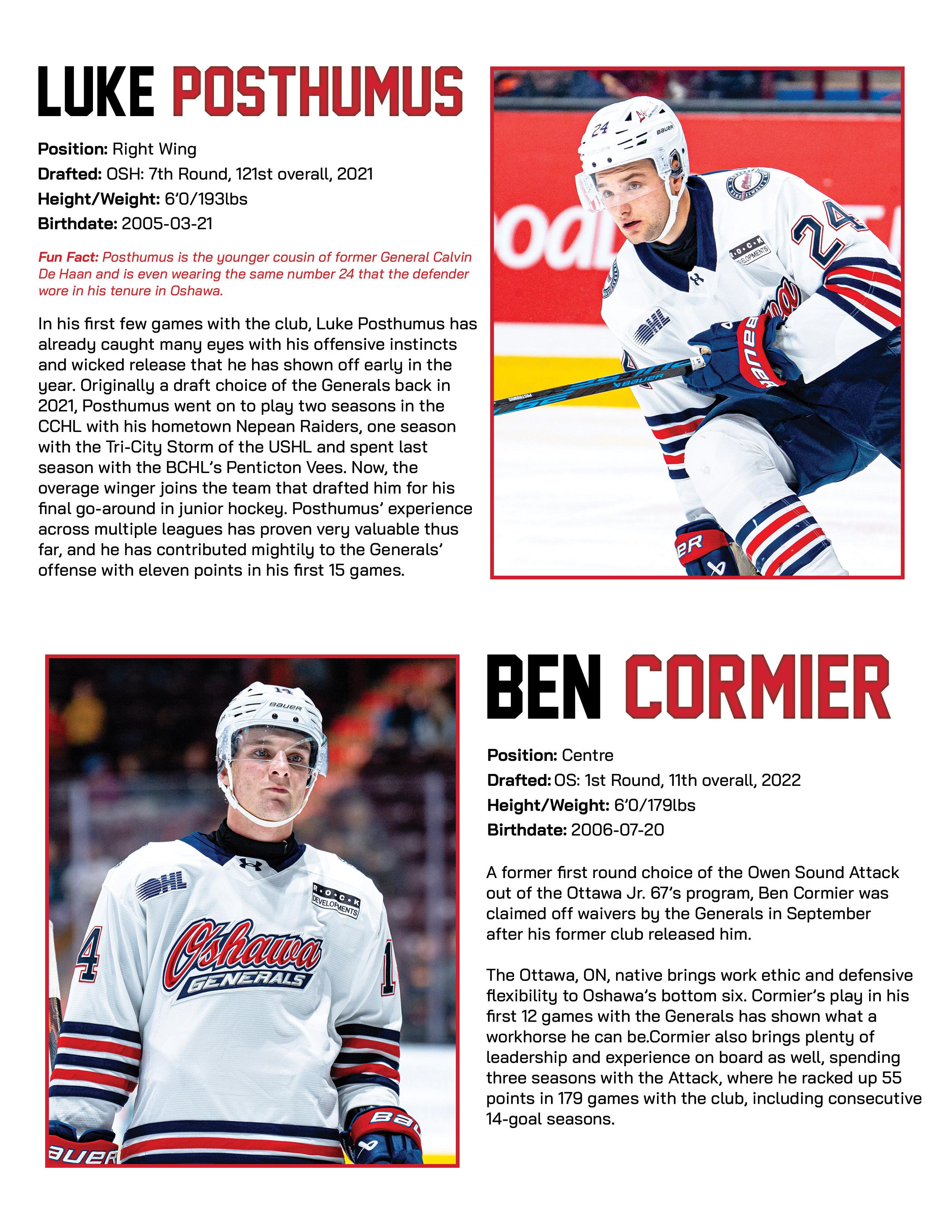 Roberts, the 16th overall selection from the Toronto Jr. Canadiens in April, brings a similar, hard-nosed style game as his father, Gary. Timmerman, out of Rochester, MI, and Laschon from Pittsburgh, PA, also bring valuable depth to the Generals’ blue line. Kalto’s size and Smirnov’s skill should contribute nicely to Oshawa’s scoring depth as well.
