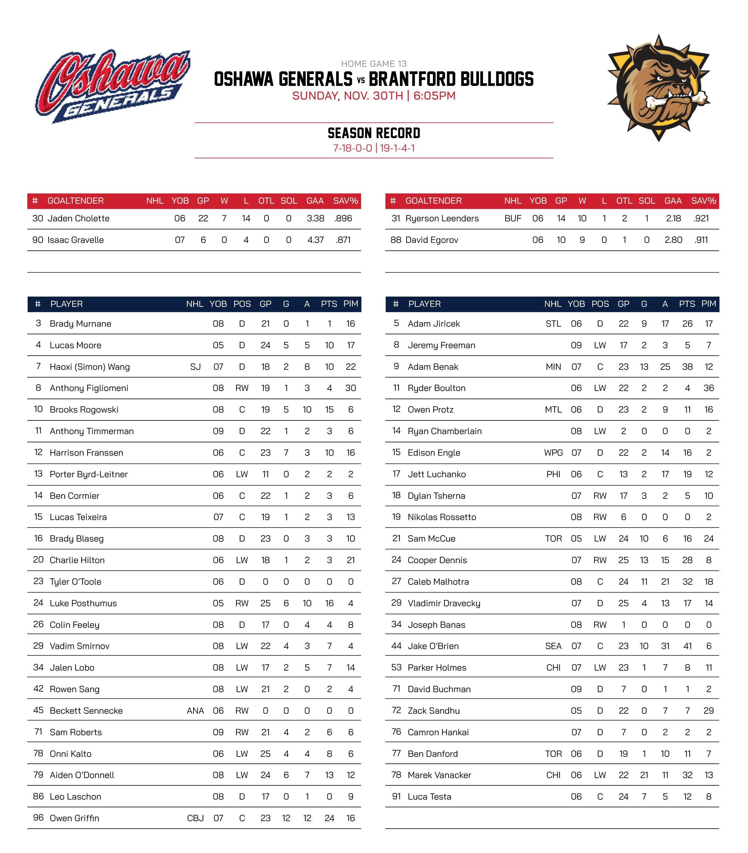 Oshawa was almost able to keep up with Brantford offensively in their last meeting but fell short 5-4. The Bulldogs controlled the flow of the first two matchups back in late October, limiting the Generals to just two goals in the two home-and-home games.