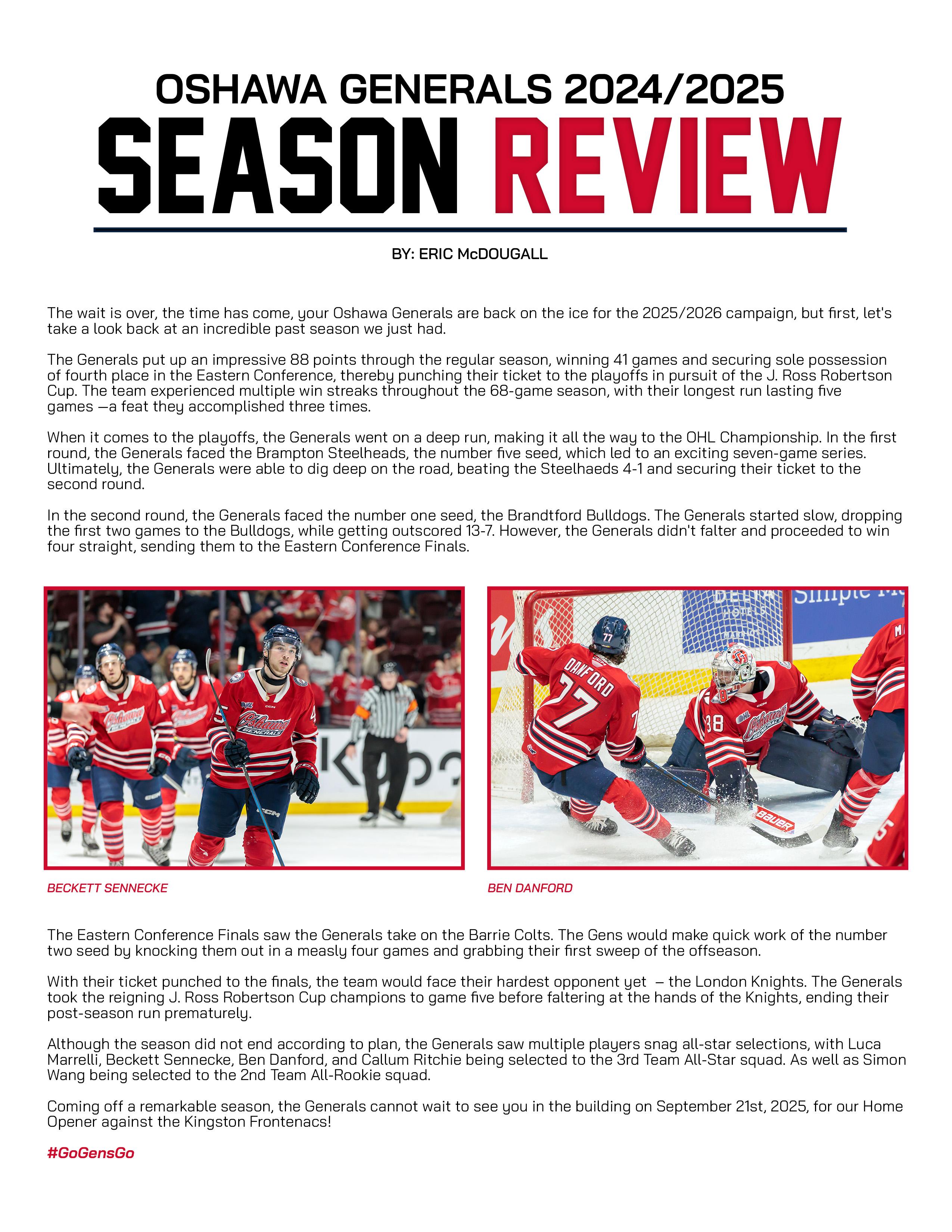 A new OHL season is here, and the Oshawa Generals gear up for another year of competitive, tough-nosed, memorable and fun hockey.