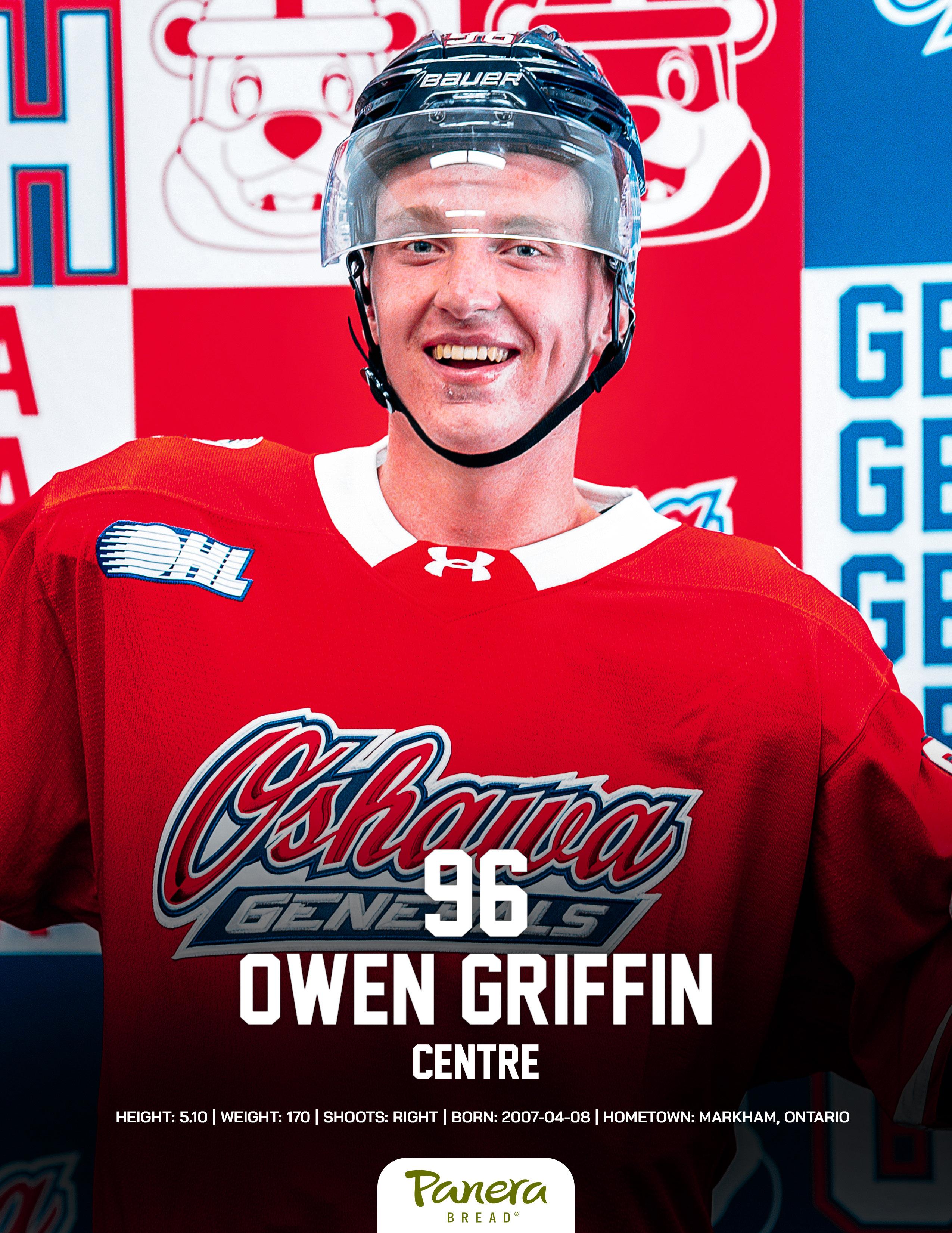 With seven points in his last five games, including five goals, look for Owen Griffin to lead the offensive attack for the Generals. In his third season with Oshawa, the Blue Jackets’ prospect has been known for his distinct offensive abilities but has become a key defender in critical situations for the Gens thanks to his on-ice awareness.