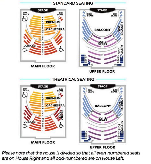 Please note that the house is divided so that all even-numbered seats are on House Right and all odd-numbered are on House Left.