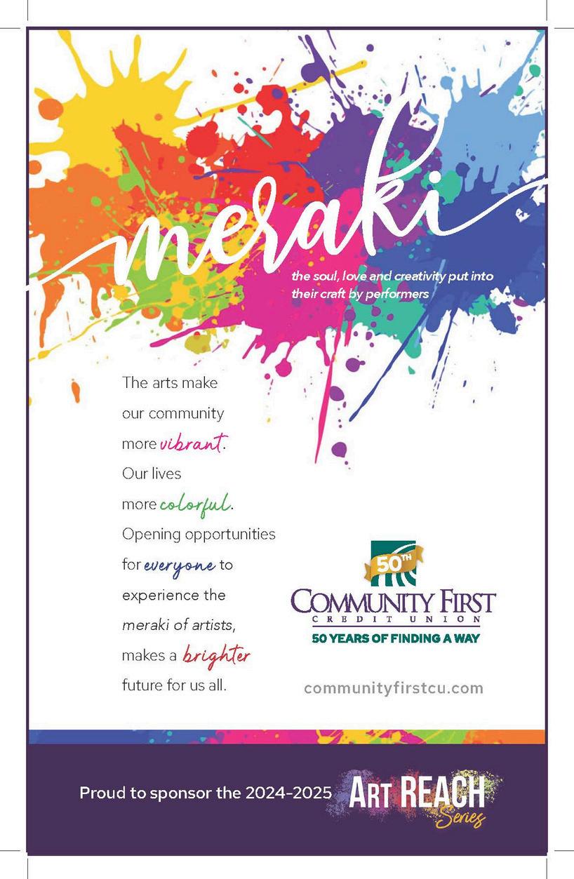 This season is no exception. As always, we ’ ve built a lineup meant to engage every generation and taste bringing artists to our stage who will move and inspire. Our commitment to the community extends beyond this room: ArtREACH takes performers into local spaces, the Student Discovery Series continues over three decades of introducing young minds to the arts, and our spirited October series, Haunted Happenings, returns for its third season of chills and thrills.