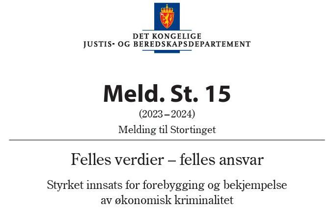 I Stortingsmelding 15, hvor målet er styrket innsats for forebygging og bekjempelse av økonomisk kriminalitet, er det mange gode forslag. Bl.a. så er noen av disse: Økt involvering i næringslivet – oppfordre private aktører til å delta aktivt i forebygging og avdekking av økonomisk kriminalitet.