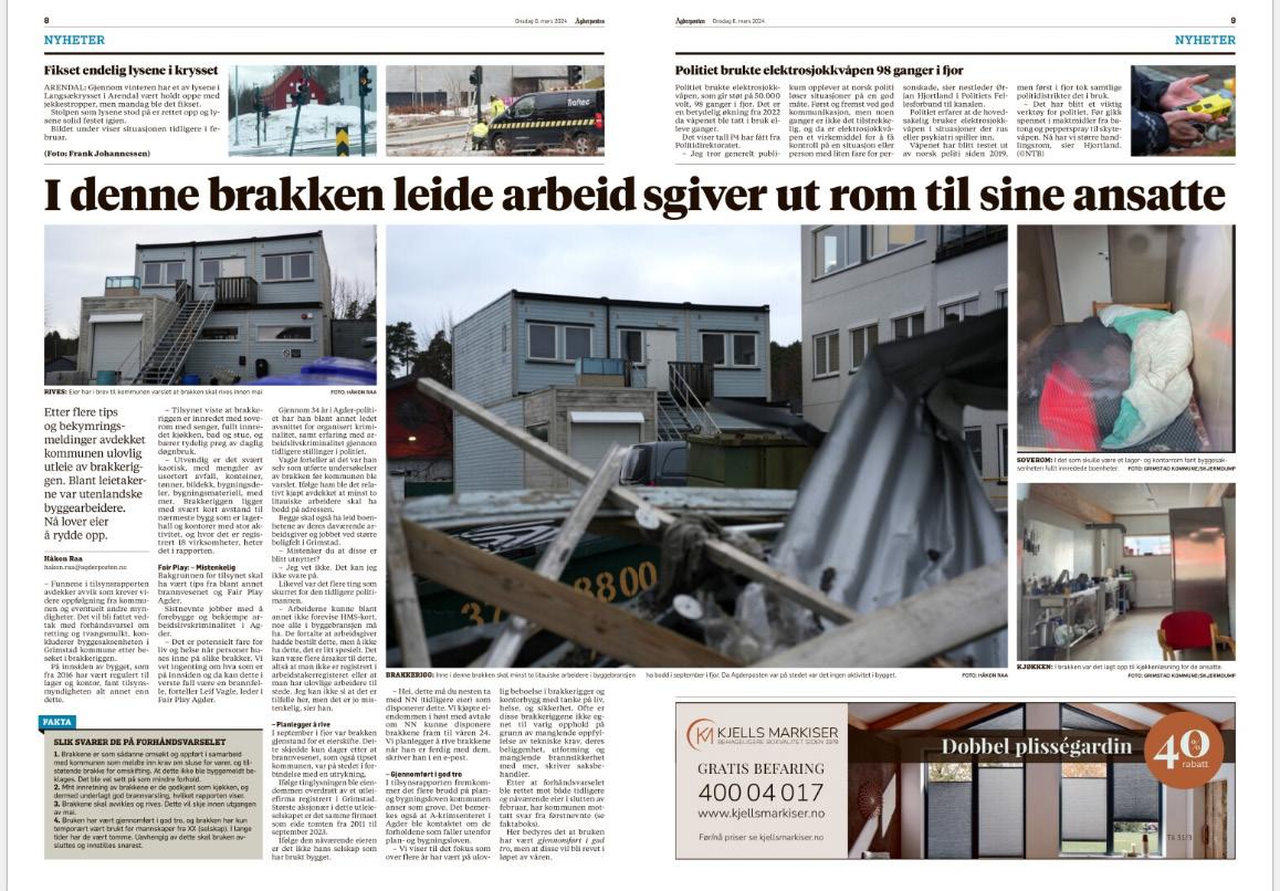 vilkår. I overkant av 435 saker har blitt rapportert og jobbet med. Det betyr potensielt at et stort antall useriøse, og kriminelle aktører har blitt satt ut av spill i vår region. Samarbeid med A-krimsenteret, Økokrim, Arbeidstilsynet, Skatt og andre myndigheter har vært svært godt og fruktbart. Bare her i Agder hadde vi i 2024 120 saker som ble levert videre til disse. Samarbeidet vårt med offentlige bestillere og innkjøpere har også fungert etter hensikten.