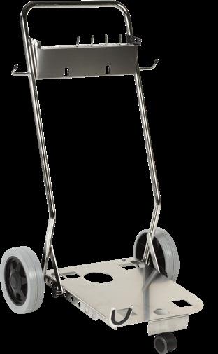 Skafthållarna är monterade på en rostfri stålskena på 50 cm. Plast för 3 skaft. Skaft med olika diameter kan fästas (9-35 mm).