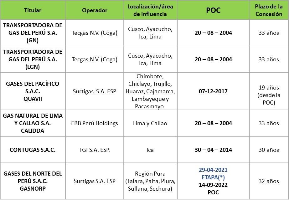 de Supervisión de Gas Natural [Fuente: Contratos de Transporte de TGP al Osinergmin}