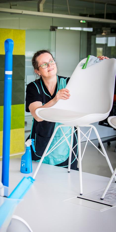 Daarnaast poetsen onze masters de opleidingscentra van Accent en het hoofdkantoor in Roeselare. “Die gebouwen zijn natuurlijk groter dan onze filialen. In het hoofdkantoor alleen al zijn er zo’n 260 mensen aan de slag.” Naast de klassieke schoonmaak vervult Cleaning Masters ook grotere opdrachten. “Bijvoorbeeld de eindschoonmaak na de verhuis of herinrichting van een kantoor”, vult Filip aan.