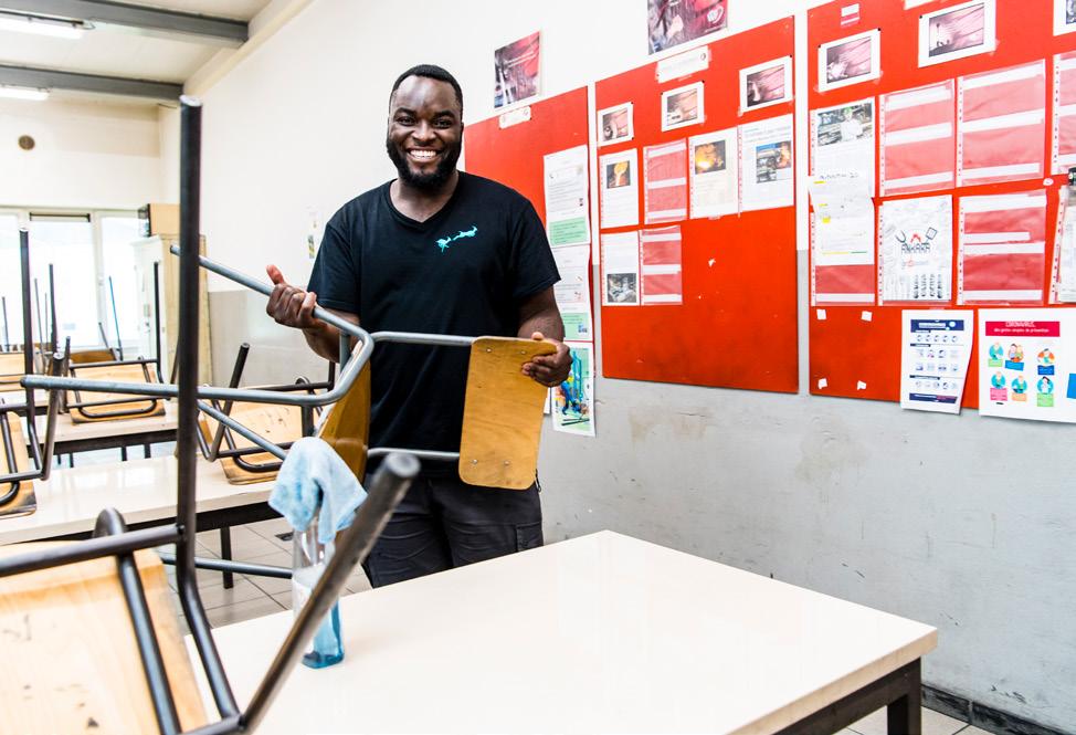 Marie Pierre gaat volmondig akkoord. “Wij zijn niet gespecialiseerd in schoonmaken, we hebben elk onze eigen taak. Dit is echt de eerste keer dat we kunnen rekenen op een bedrijf dat dit voor zijn rekening neemt.”