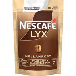 Refill Nescafé Lyx. 200 gr. Softpack. Mellanrost, Mörkrost. Jmf.pris 437:50/kg