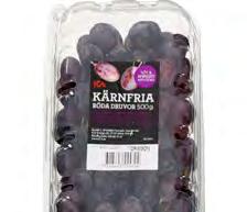Erbjudandet gäller t.o.m. 2 mars 2025. Reservation för slutförsäljning. Röda kärnfria druvor i ask. ICA. Sydafrika. 500 gram. Klass 1. Jmf.pris 50:-/kg