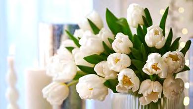 Den ljusa skandinaviska stilen är ständigt populär och för alla som målat sina hem vita, investerat i vitt porslin och vita textilier kan det kännas tryggt att det fortfarande fungerar bra. Här är vita tulpaner helt rätt.