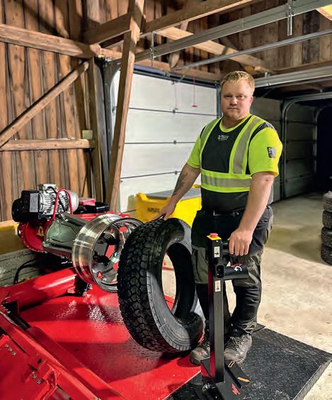 – Här i verkstaden skiftar jag däck och även om jag kan hjälpa privatpersoner byta kompletta hjul är mina kunder framför allt entreprenörer med tunga fordon som lastbilar, grävmaskiner och traktorer, säger Jonas. Det är ett fysiskt utmanande jobb med en hel del tunga lyft och rätt arbetsteknik är därmed avgörande.