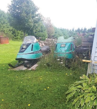 Kevin Leveille emailed this photo in to showcase his love of his ZRTs and his security measures that he has implemented to protect them. Where do we begin.. By taking the windshield off of the one sled, he is able to pick up an extra few miles per hour on Kevlar Lake. The tightly wrapped clear plastic obviously was done to protect the seat and the 150 HP triple cylinder engine and discourage and local thieves. Now how would you protect the other ZRT with a flared Sportech windshield? It’s quite simple really, just take the skis off. No matter what it is; cars, dogs, children, etc., when you have two of something, one always feels it’s treated differently. And this is true for snowmobiles too! Kevin Van Veen sent this photo in and you can see the way he tucked away the one sled, which has a clean new windshield, an un-ripped seat propped up on a wood pedestal framed by a perfectly manicured lawn. …While the other was laid within a bed of weeds and features nothing but a broken window. Kevin, your favortisim is showing. ON SNOW MAGAZINE • VOL 11 • ISSUE 2 35