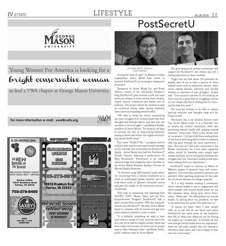 During the week of April 14, Mason’s student organization Active Minds held events to promote PostSecretU, an on-campus community art project. Sponsored by Active Minds Inc. and Frank Warren, creator of the well-known PostSecret blog, PostSecretU gives students a safe and open forum on campus to share secrets, fears, dreams, regrets, desires, confessions and hidden acts of kindness. The project allows for students to find an emotional release while raising awareness about issues surrounding mental health. “We want to break the silence surrounding our inner struggles to let students know that their thoughts and feelings matter, and that they are not alone in their struggles,” said Melissa Simkol, president of Active Minds. “By doing so, we hope to increase the rate of help-seeking behaviors among students and reduce the stigma surrounding mental health issues.” First came “Chalk It Up!,” a program that let students write positive and inspirational messages on the sidewalk that surrounded the PostSecretU display. Active Minds also held the PostSecretU Benefit Concert, featuring a performance by Meg Hutchinson. Hutchinson is an award winning singer and songwriter and a member of the Active Minds National Speakers Bureau of Mental Health Advocates. “In between songs [Hutchinson] spoke about her recovering from a mental breakdown as a result of unmanaged bipolar disorder. She also read aloud some of Mason’s submitted secrets and gave her insight to the anonymous writers,” Simkol said. With help in sponsoring and planning from WAVES, CAPS, Mason Cares and the Peer Empowerment Program, PostSecretU had a great turnout from students. With this being the second year PostSecretU was held, Active Minds hopes to continue with its success and get even more students involved in years to come. “It is definitely something we want to have back within a couple of years. And this year is the first year we’ve had the display outside, which has been really cool because we have a lot of people stop by when walking to class,” said Emily Swain, public realtions chair of Active Minds.