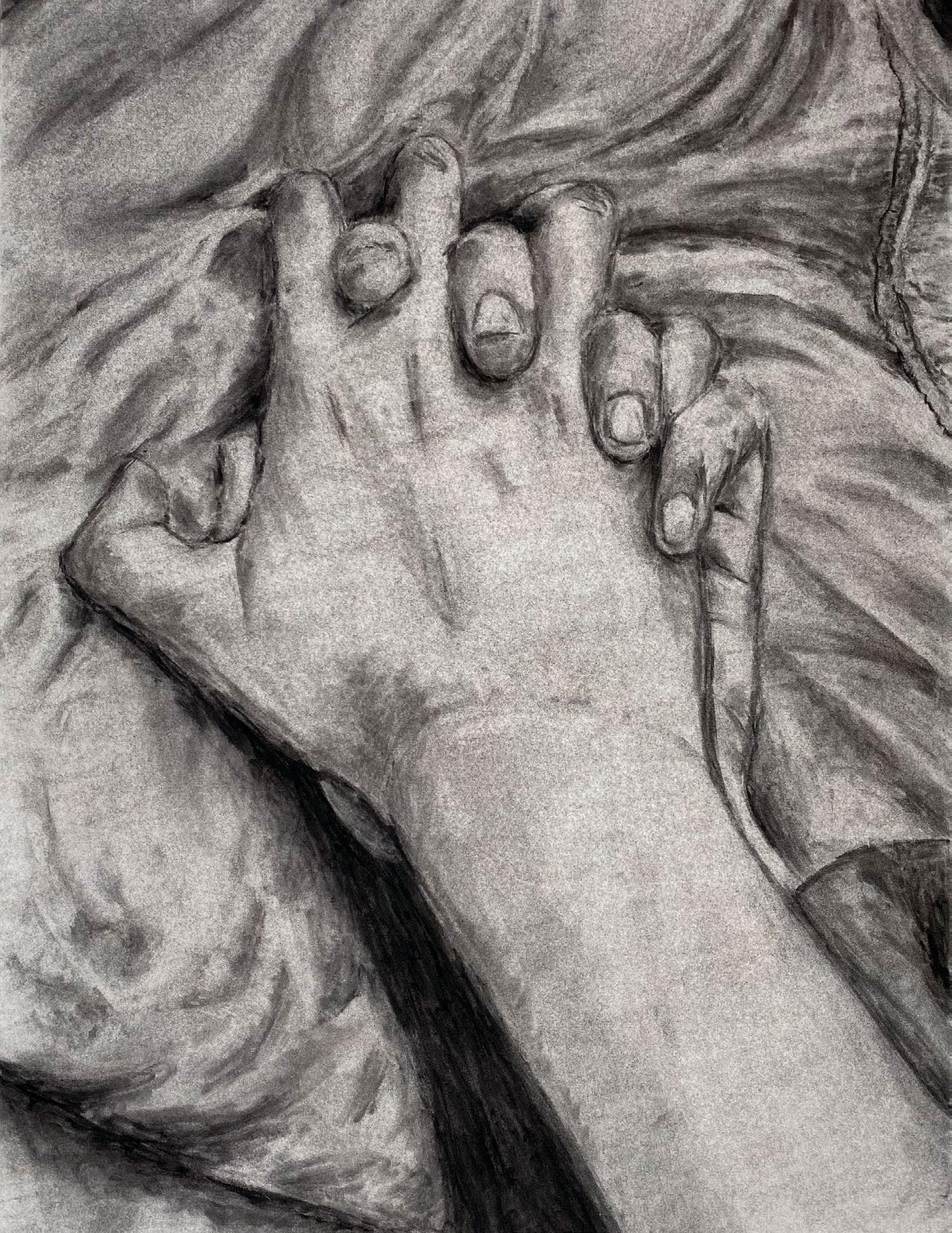 Even our assailant knows my hands cannot be coerced. Your tall, tender hold is coming down with me. We’re going down together. Down together. Together.