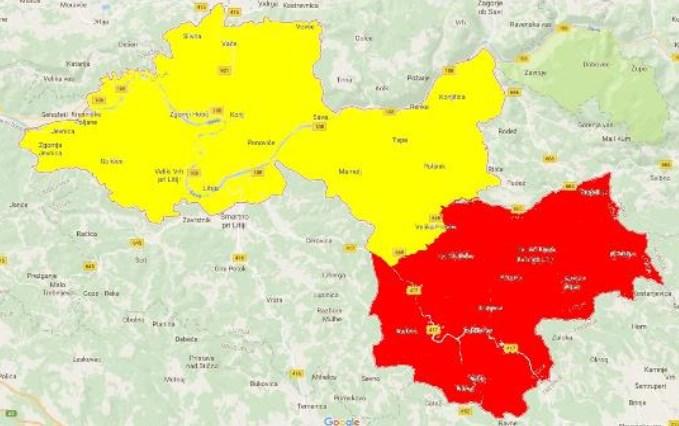 Rumeno in rdeče obarvano je Občina Litija, rdeče je šolski okoliš Osnovne šole Gabrovka - Dole.