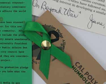 The pledge has been analyzed by many over the years, and was adapted to create the “HSU pledge” in 2019. Its impact has been smaller, but the Grad Pledge Alliance oversees it as well, symbolized with a yellow ribbon. The incentive was to create something for students to engage with while still in school. For it to be used as a reminder to build a strong campus community and as a step towards the grad pledge. Both Ihne and Wood felt that students thinking about the meaning,