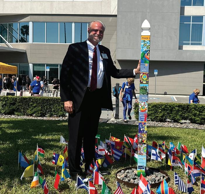 This project was a collaborative effort between the Sun City Center Rotary Club and Gannon University. Former 2024-25 Rotary District Governor Chevon Baccus played a pivotal role in bringing it to life, helping design a pole featuring award-winning artwork created by children from around the world. The images