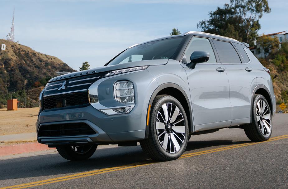 The front fascia shows off a “dynamic shield” black grille with the recognizable Mitsubishi insignia, surrounded by horizontal LED headlights and fog lamps. Step into the clean and simply designed cabin and find yourself staring at dual 12.3-inch