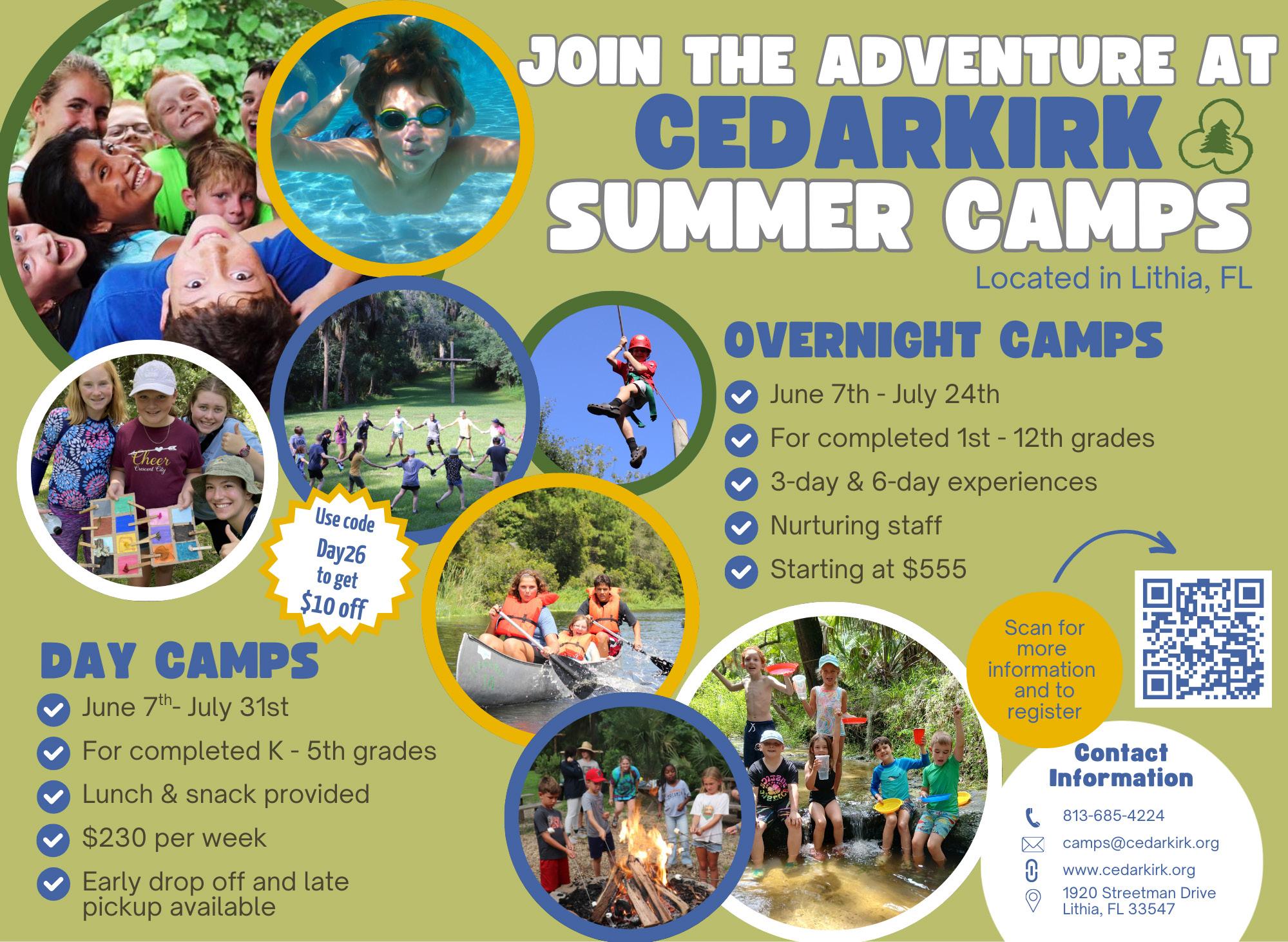 Camp is offered Monday through Friday from 7 a.m.-6 p.m. at High 5 Inc., located at 405 Beverly Blvd. in Brandon. Campers can sign up for individual weeks or throughout the entire summer. Visit www.high5inc.org or call 813-689-0908.
