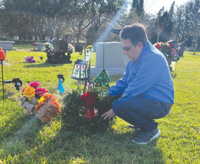 Rob Schelle placing a wreath at Serenity Meadows in Riverview as part of Wreaths Across America Day.