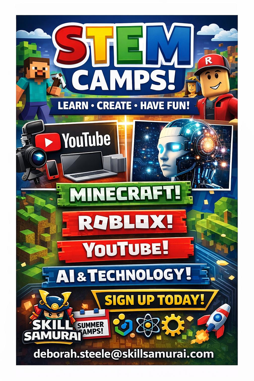 Skill Samurai’s STEM Camps give students hands-on experience with today’s most exciting technologies. Campers explore Minecraft and Roblox through creative game design, learn responsible content creation in YouTube Studio and discover the fundamentals of artificial intelligence. Designed for curious minds, these camps build problem-solving, creativity and confidence in a fun, supportive environment. Perfect for beginners and experienced students alike, Skill Samurai helps children turn interest in technology into real-world skills that last a lifetime locally. Visit www.skillsamurai. com/fl-brandon/camps or call 813-761-2832