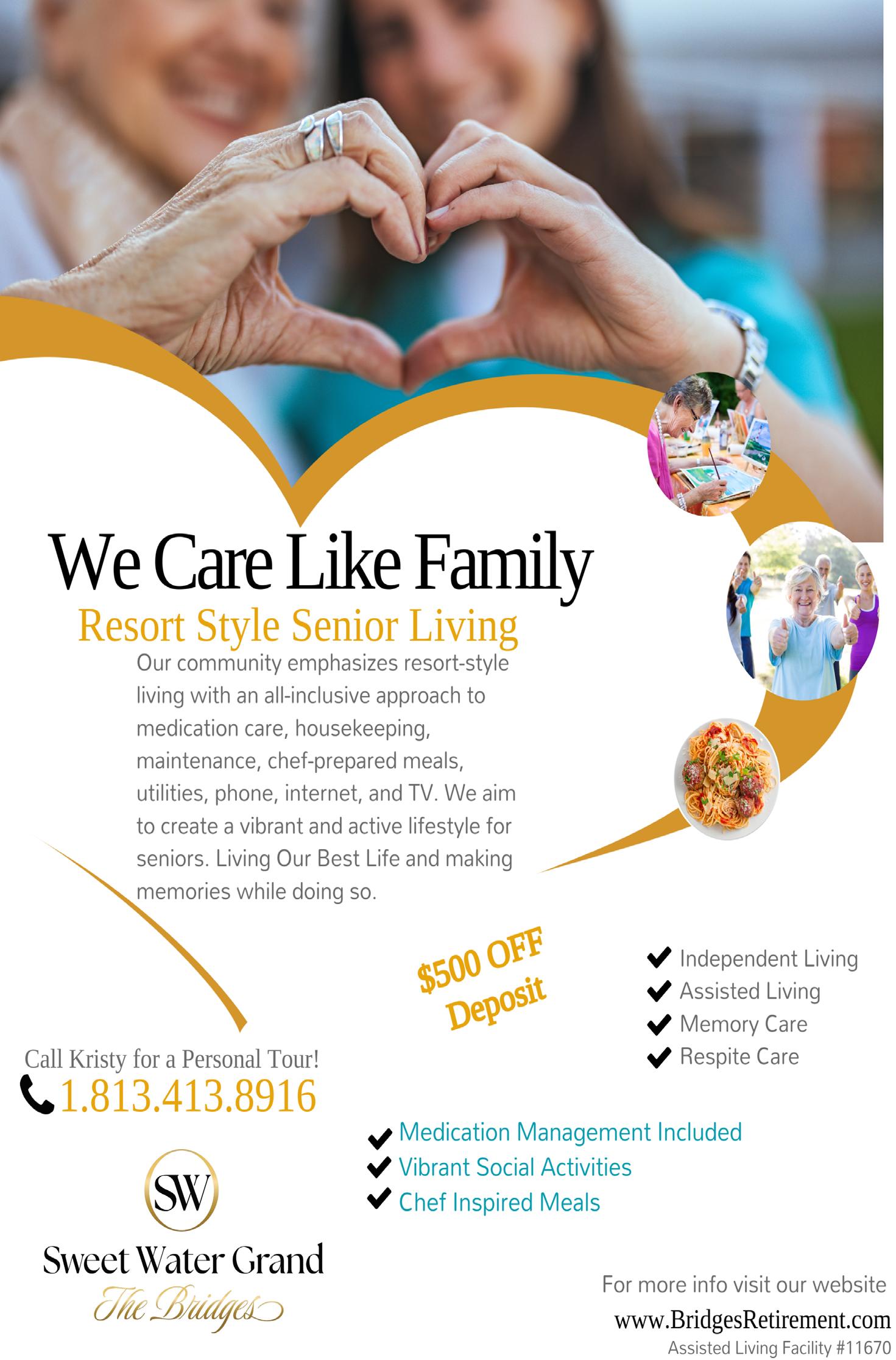 We treasure every resident and provide personalized, enriching experiences that brighten each day. Live as independently as you like in assisted living or benefit from our specially designed memory care services. We recognize retired military and first responders