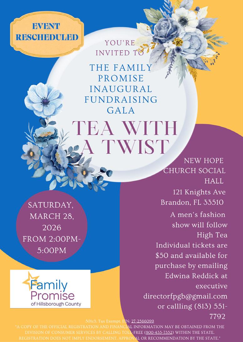 Family Promise of Hillsborough County will host its first-ever fundraising gala, Tea With a Twist, on Saturday, March 28, from 2-5 p.m. at New Hope Church. Designed as a stylish yet meaningful afternoon, the event blends tea, fashion and community connection while raising critical funds for families experiencing homelessness in Hillsborough County.